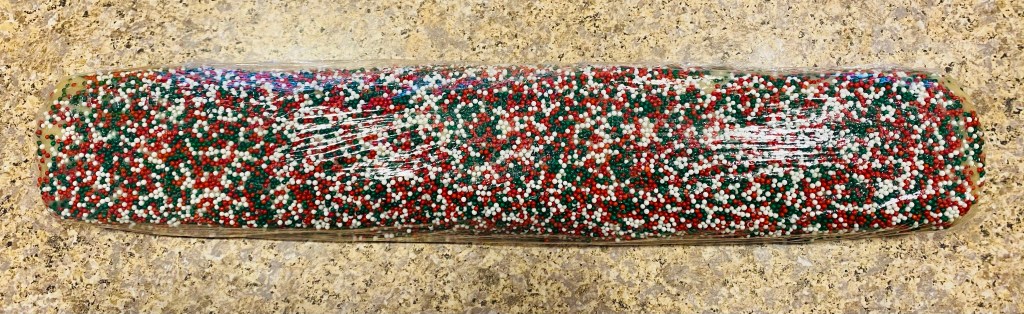 - Roll dough in nonpareils until fully covered.