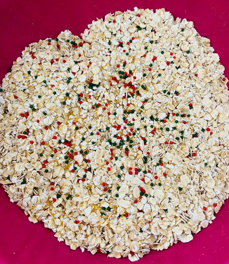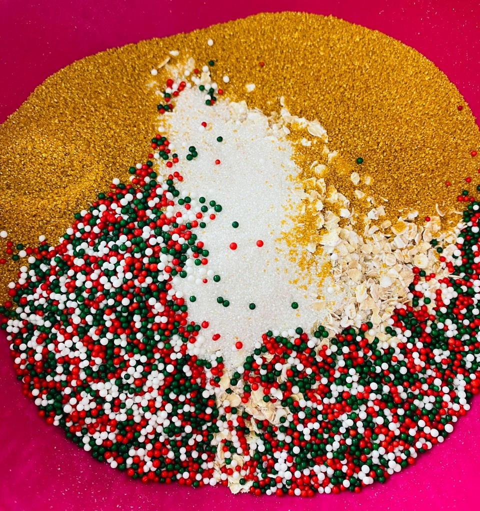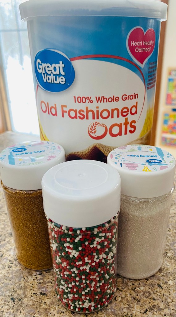 When I was little my mom used to have us sprinkle oatmeal and glitter in our yard to help the reindeer find their way to our home. While this is a super cute tradition, it isn’t environmentally friendly. Sanding sugar will give the same sparkle as glitter and nonpareils will add a touch of color. It is also not going to hurt any critter friends that might visit your yard and ingest the sprinkles.