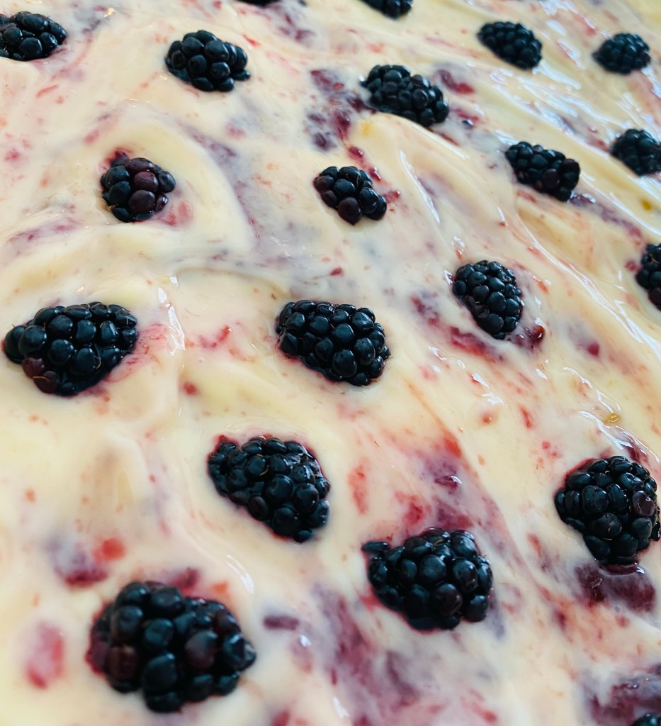 - Evenly sprinkle the blackberries over top.
