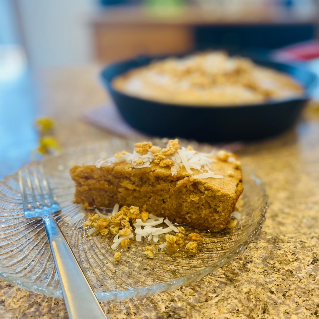 I enjoy this cake with desiccated coconut and a handful of granola to add texture. It is also fantastic with fresh blueberries and a dollop of Greek yogurt.