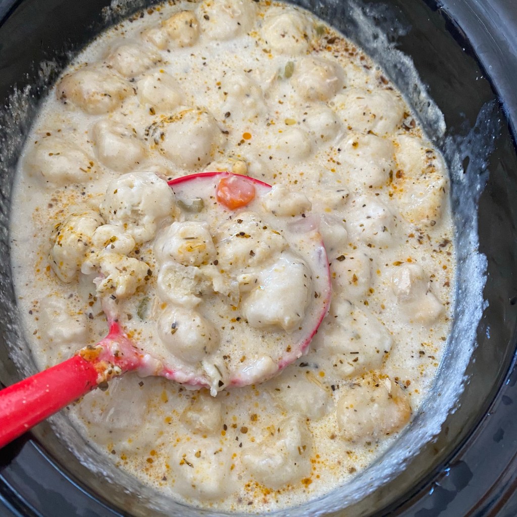 - Cover crock pot and allow dumplings to cook for 30 minutes.