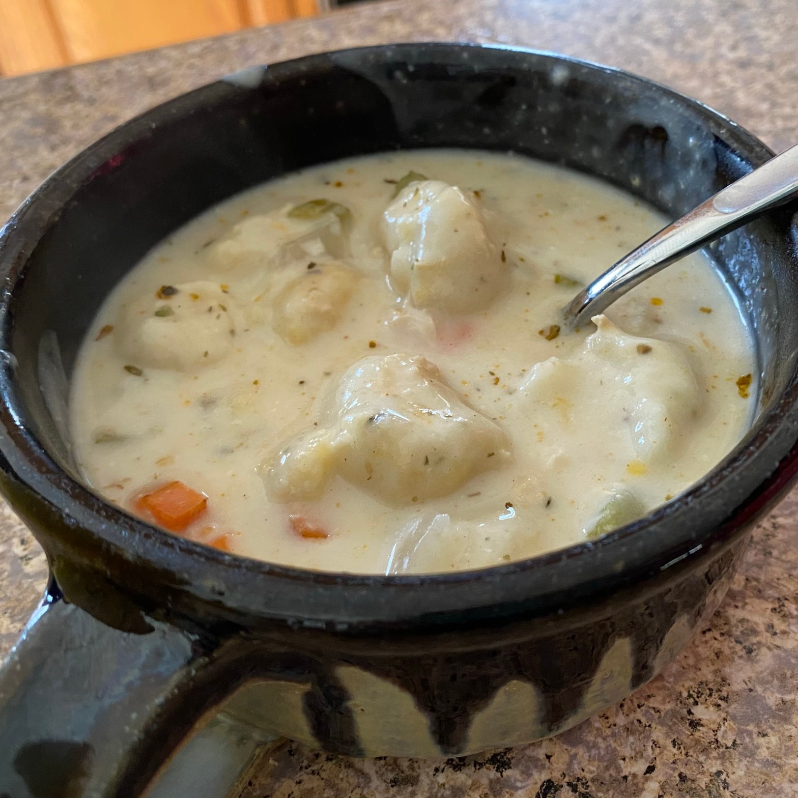 Chicken and dumplings always reminds me of my Grandma. She was such an amazing cook and sometimes it seemed like she was able to put together amazing dishes right out of thin air. I know skills like that come with time – but I honestly believe she had a natural instinct for cooking. I may have inherited some of that intuitiveness, but I have spent a lot of time in the kitchen making mistakes and learning. I happened upon this recipe by accident; I actually intended to make a spicy chicken soup. What a beautiful mistake this turned out to be.