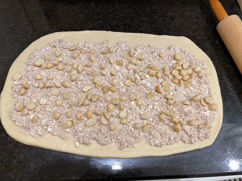 - Frost cinnamon rolls and sprinkle with extra macadamia nuts.