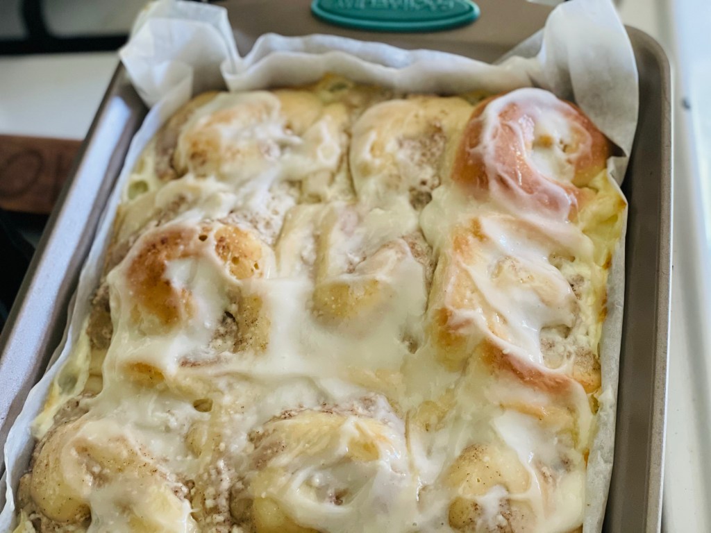 - Bake sweet rolls for 20-25 minutes or until golden brown on top.