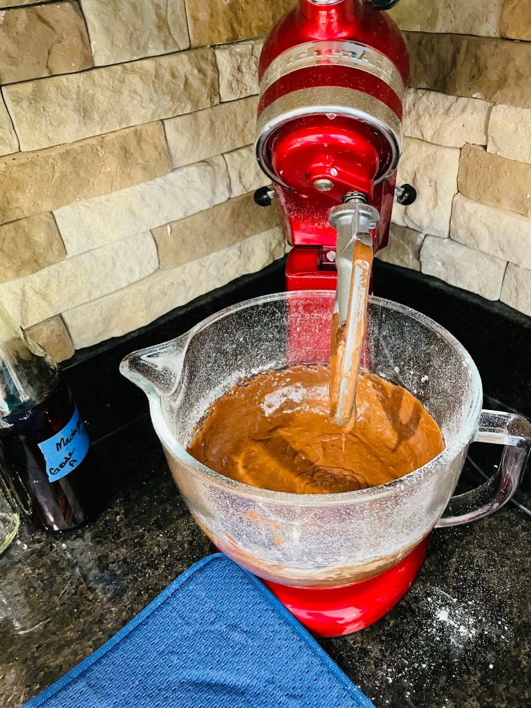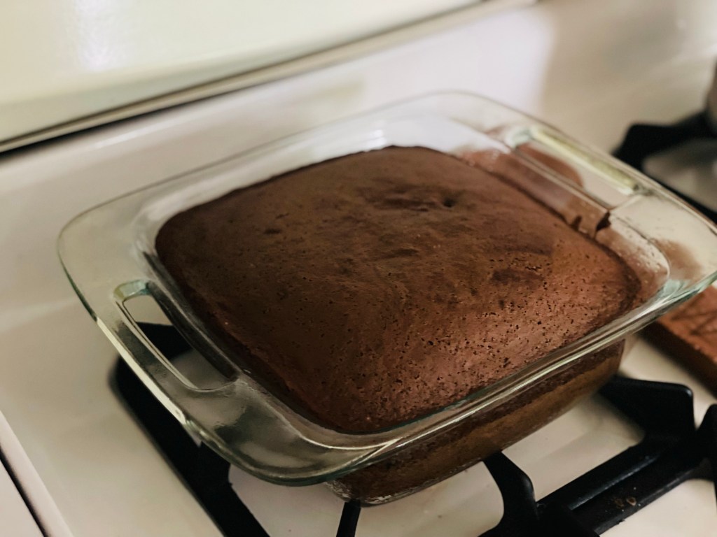 The other reason I really like eggplant in this recipe is it really helps deepen the chocolate flavor. When cooked, I find that eggplant takes on almost a butter like consistency and has a very neutral flavor. It will pair well with whatever you chose to cook it with. Because it’s not overpowering the chocolate flavor really shines. I also always add espresso powder to my chocolate cakes and brownies – it deepens the chocolate flavor giving it a more intense richness. This cake is good on its own – trust me. You might end up just wanting to eat it out of the pan. I do suggest making either a peanut butter drizzle or fudge frosting for this cake – or just sprinkle it with a touch of powdered sugar!