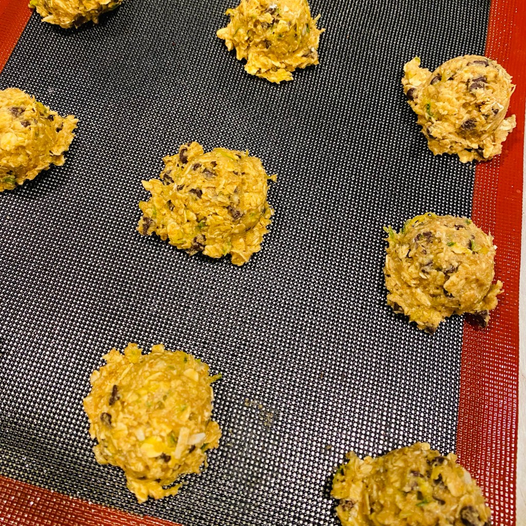 - Drop cookies onto cookie sheet in 2 tablespoon sized balls with three inches of space between.