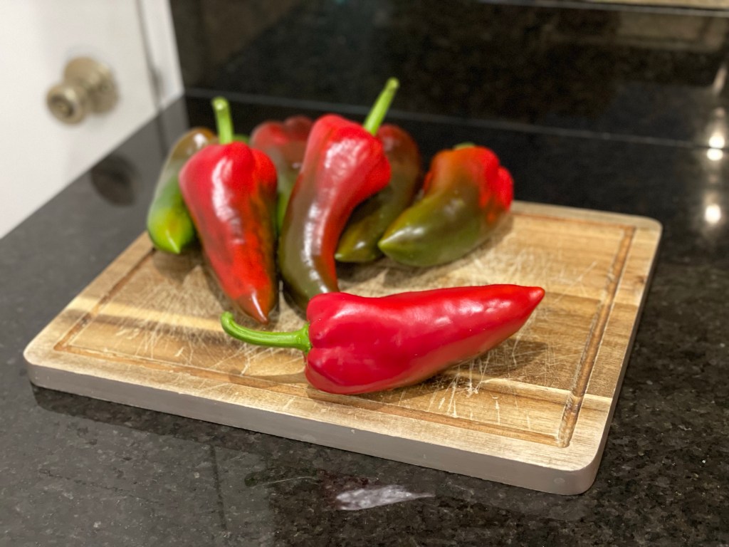 When picking peppers you don’t want to use anything spicy. This soup packs so much flavor that you won’t miss the heat of spicy varieties. Bell peppers or poblanos work very well. These happen to be ajvarski sweet peppers which originated from Northern Macedonia. They are amazing grilled and have the most enticing aroma when cooking.
