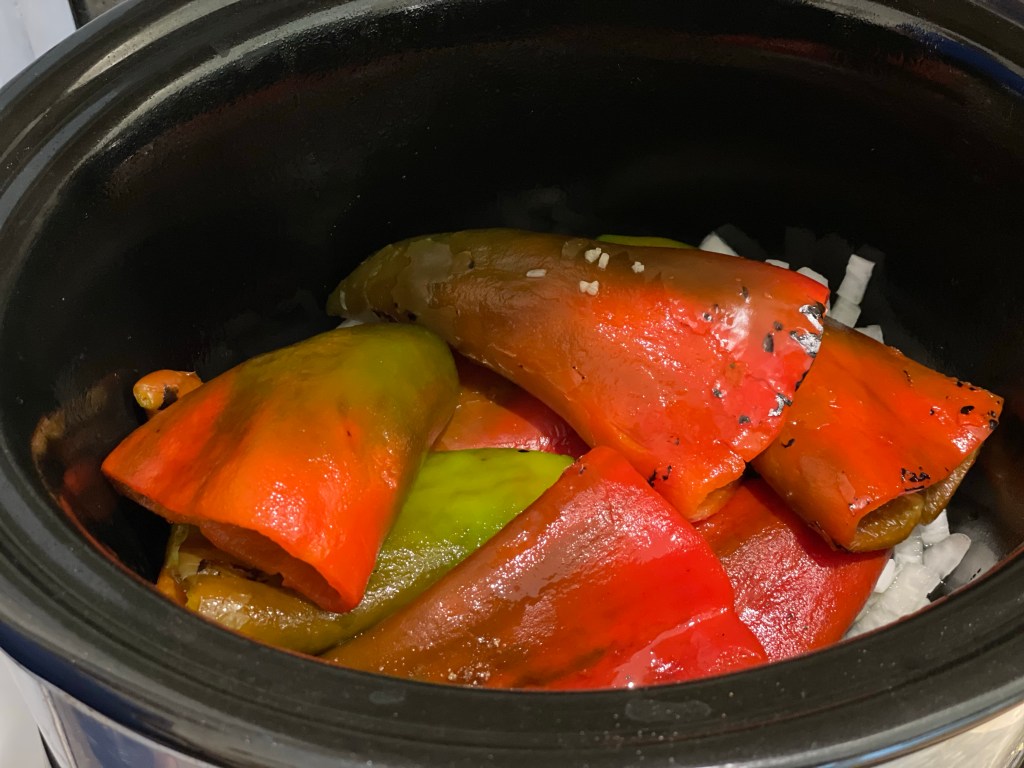 - 6 large sweet peppers – skins and seeds removed