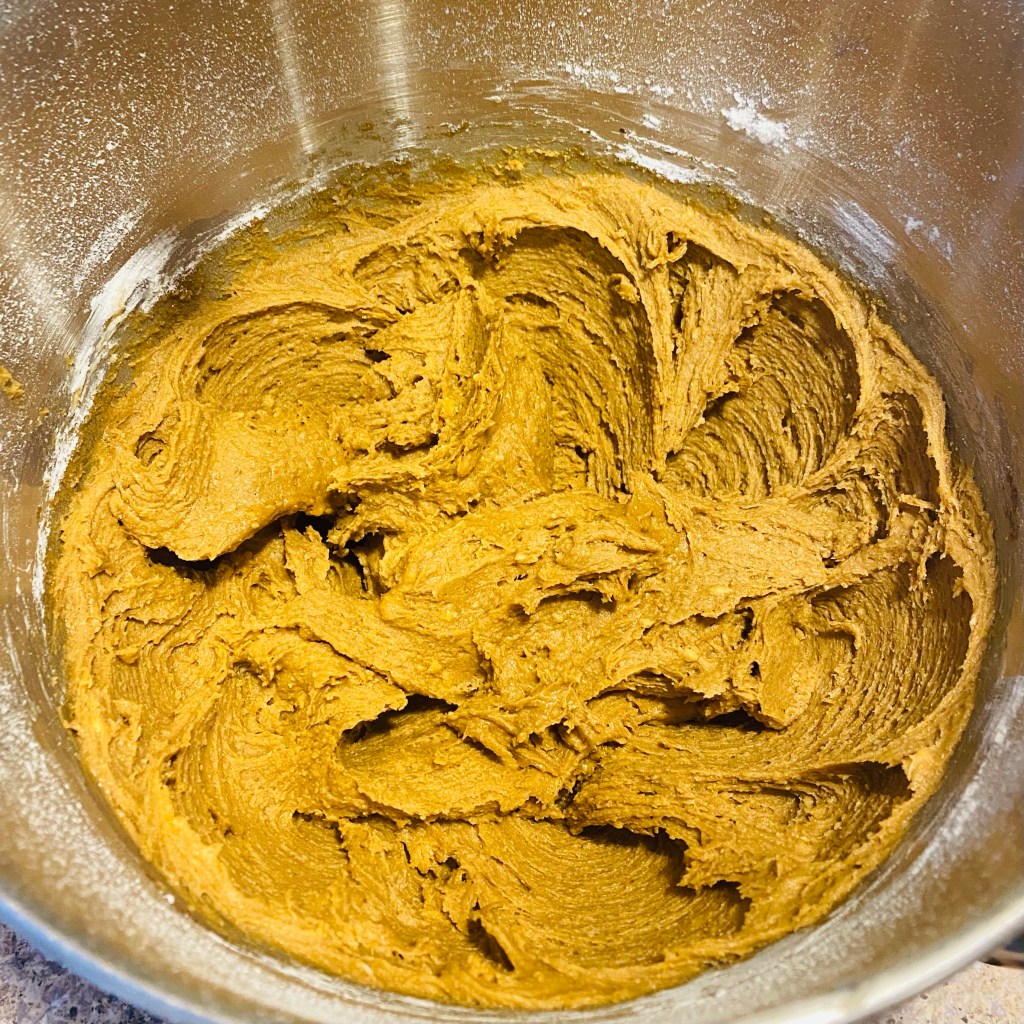 - Cream together butter, sugars, molasses, vanilla and eggs until smooth.