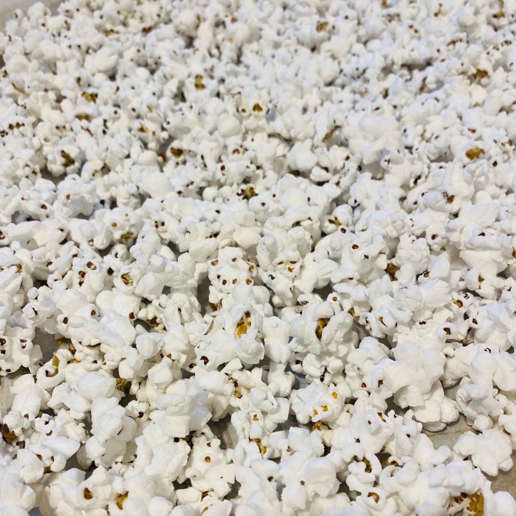 - Turn popcorn out onto a fresh sheet of parchment paper spreading it out evenly.