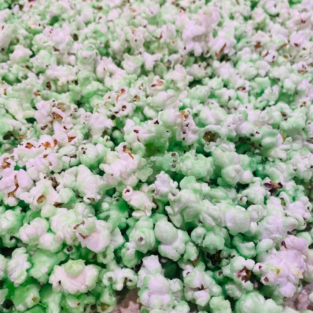 If you wish, once cool enough to handle you can form the popcorn into popcorn balls. You will want to wear well oiled food safe gloves for this task. Once your colors have all hardened, mix together and enjoy! Leftovers can be stored in an airtight container for up to one week.