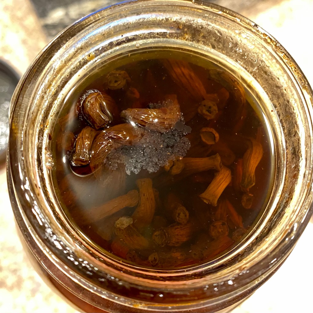 Once you add your beans to your bottle (I highly recommend using a glass one – mason jars work well!) you will just simply pour the vodka over top and make sure the beans are fully submerged. For every weighted ounce of beans you will need one cup of vodka. If your beans are staying above the vodka line you can tie them into knots to help keep them submerged or place a clean river rock on top. Once your beans are happy and soaking place them into a dark place.