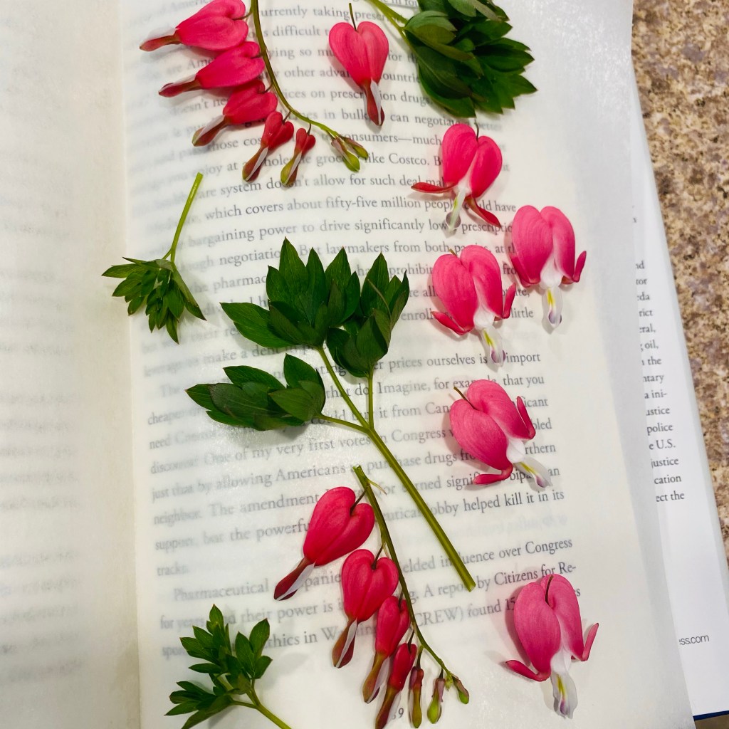 Pressing flowers is a great way to preserve your garden fresh blooms and enjoy them year round. My daughter will occasionally pick some of my flowers in my garden and I like to hold onto them for the memories. She ended up bringing me a bleeding heart stem and I knew this one needed to end up on my wall.